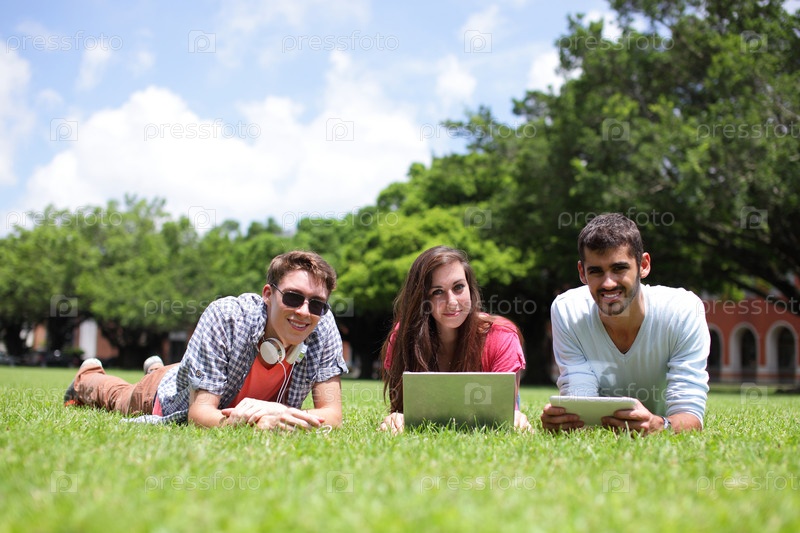 Счастливые студенты на поляне