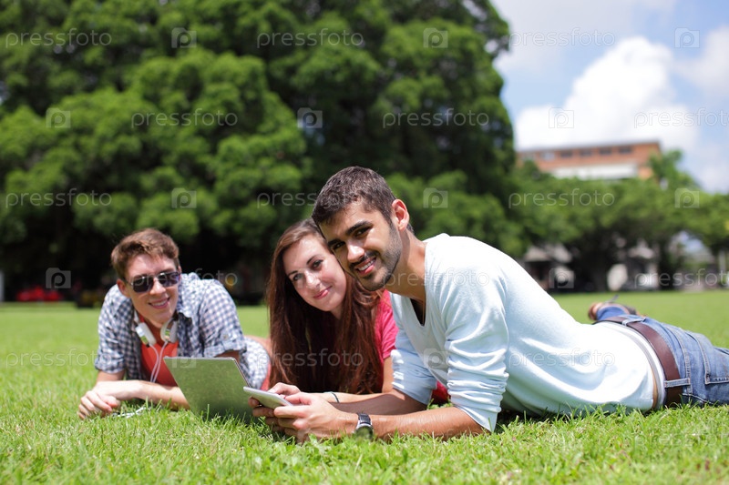 Счастливые студенты на поляне