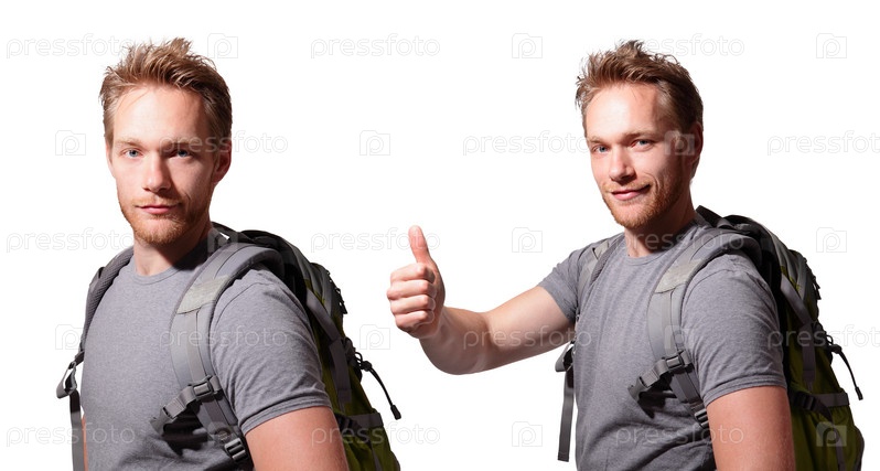 Турист на белом фоне