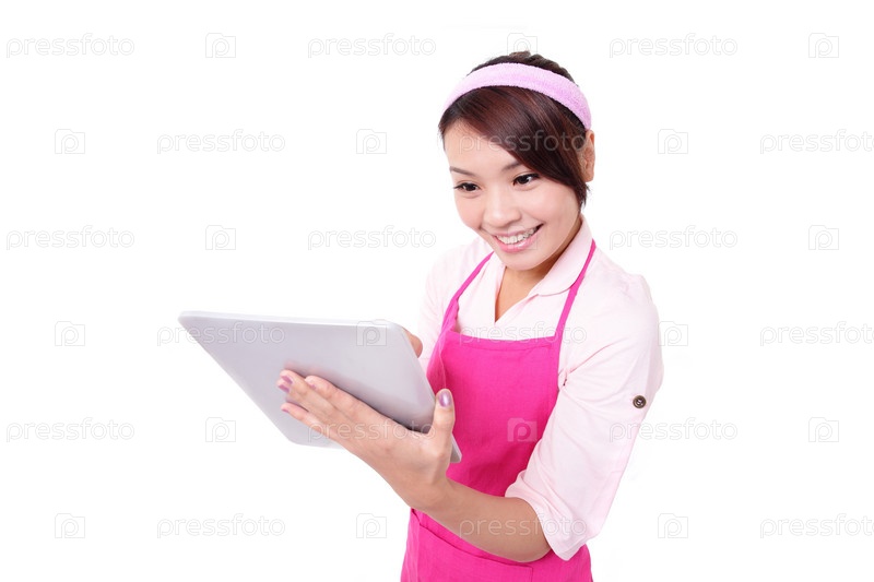 Молодая домохозяйка с планшетом