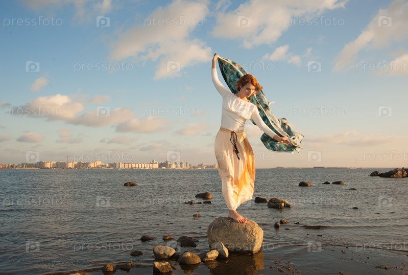 Девушка босиком на камне