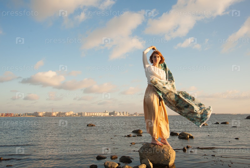 Девушка босиком на камне