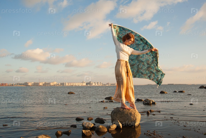 Девушка босиком на камне