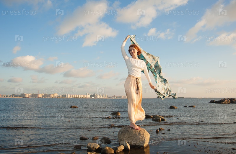 Босая девушка на камне