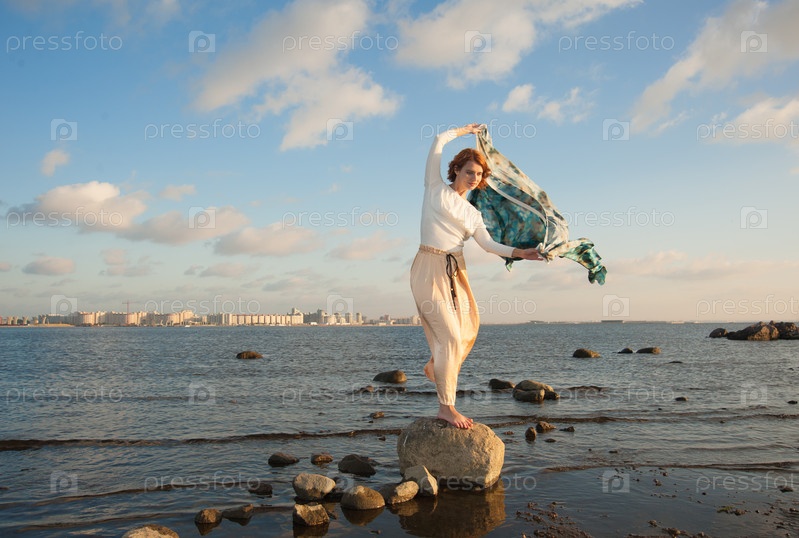 Босая девушка на камне