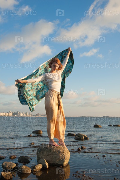 Девушка позирует на берегу озера