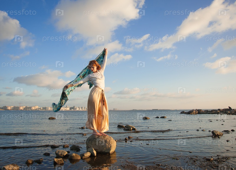 Босая девушка на камне