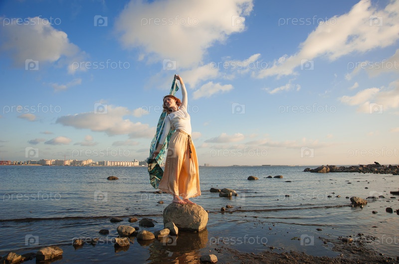 Босая девушка на камне