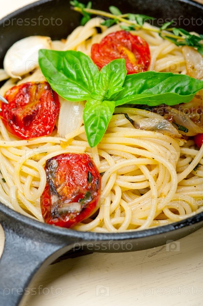 Спагетти с запеченными помидорами
