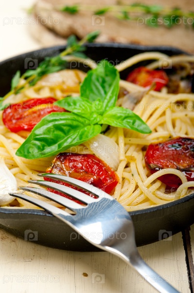 Спагетти с запеченными помидорами