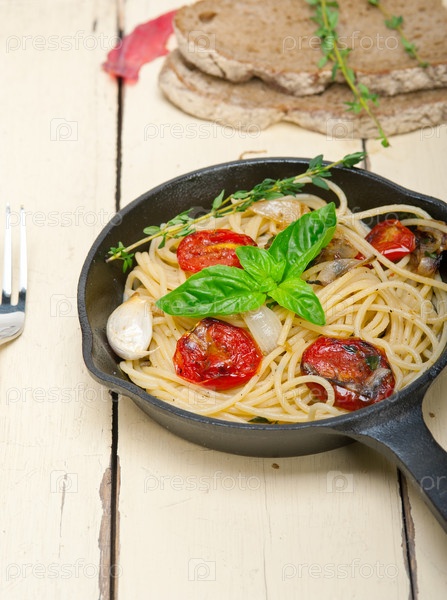 Спагетти с запеченными помидорами