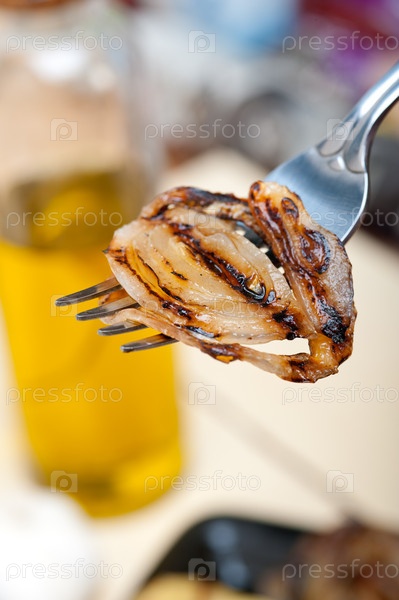 Жареный лук на вилке