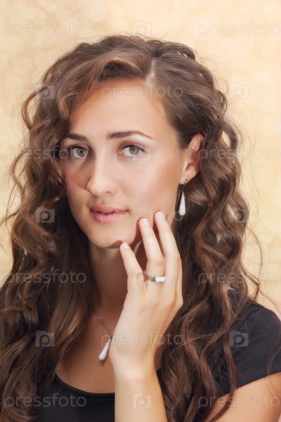 Женщина с бриллиантовыми серьгами и кулоном