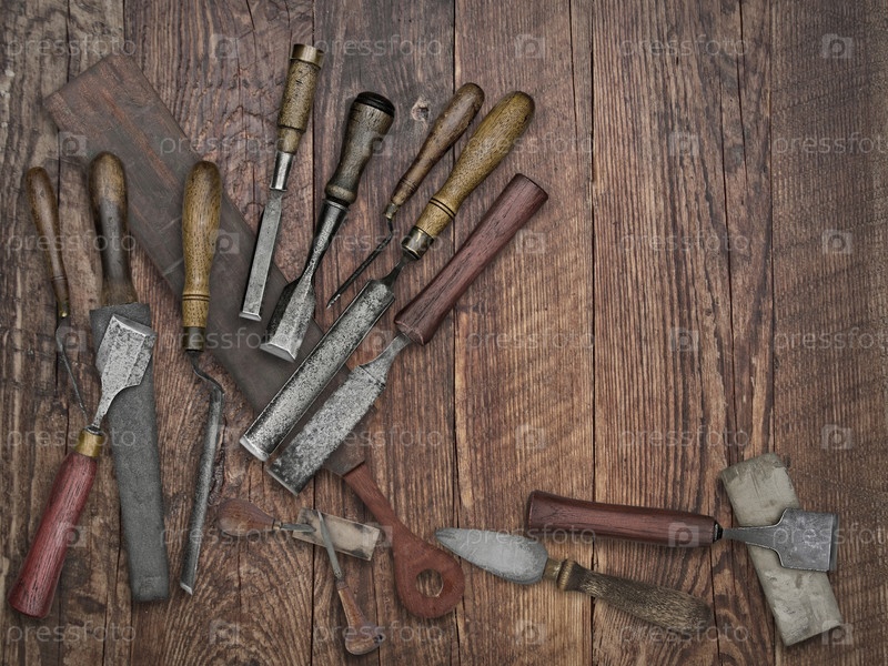 Старинные зубила на деревянном фоне