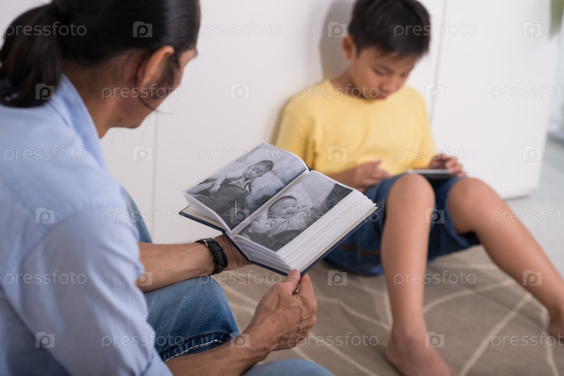 Отец с сыном смотрят фотоальбом