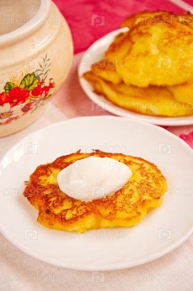 Сырники со сметаной на столе