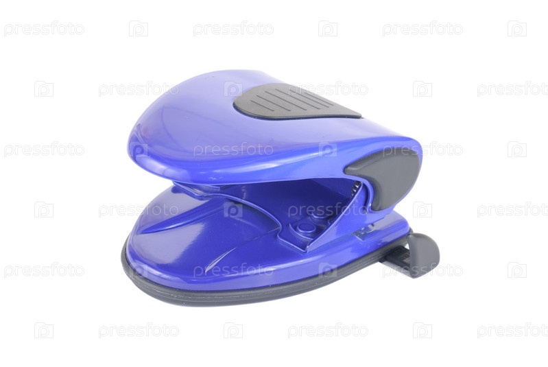 Синий дырокол на белом фоне