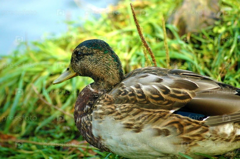 Утка на берегу реки