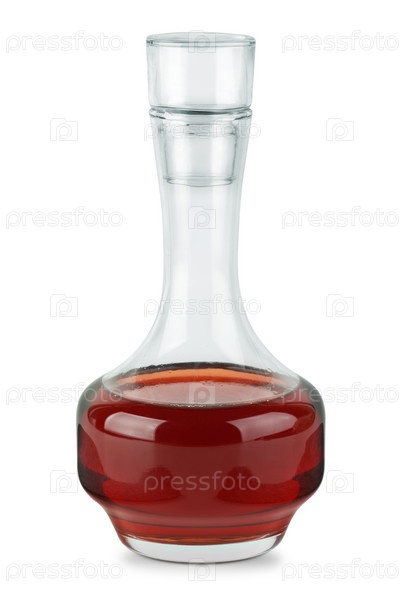 Графин красного винного уксуса на белом фоне