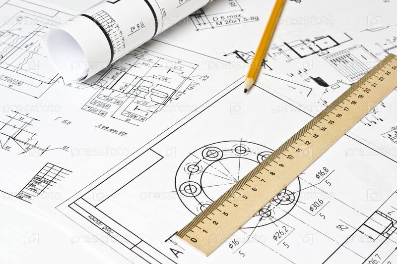 Чертежи, линейка и карандаш