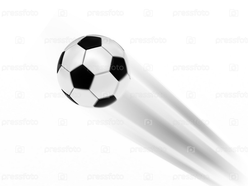 Летающий футбольный мяч на белом фоне с эффектом размытия движения. высокое разрешение 3D-изображение