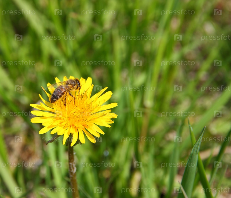 Пчела на желтом одуванчике
