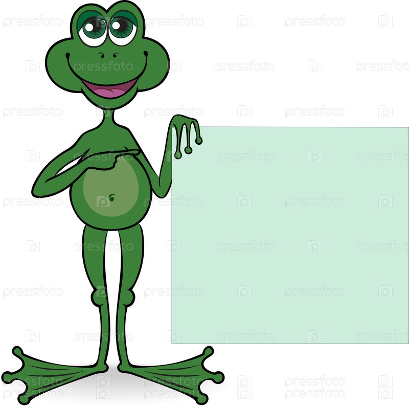 Зеленый лягушонок держит в лапке квадратный плакат