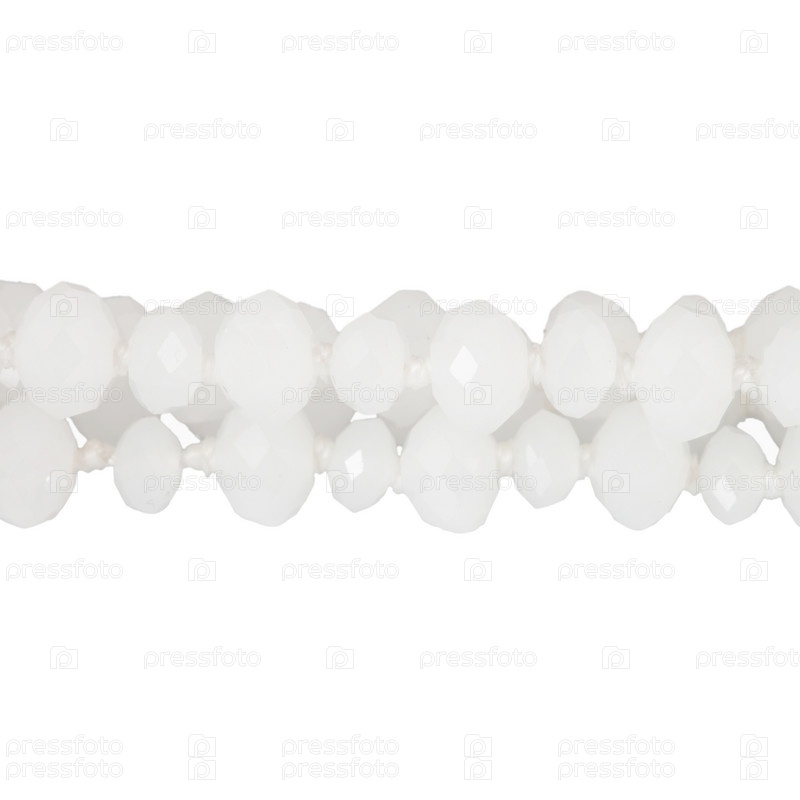 Белые бусы крупным планом на белом фоне