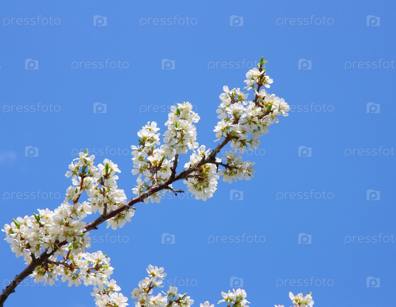 Ветка цветущего дерева на фоне синего неба