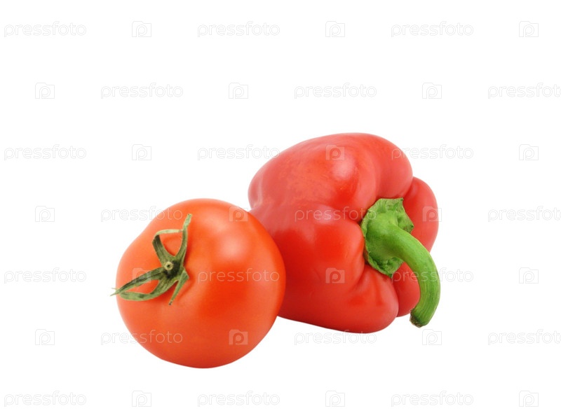 Болгарский красный перец и помидор изолированы на белом фоне