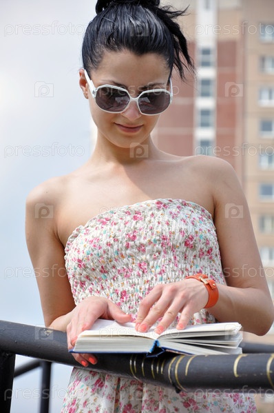 Молодая женщина читает книгу в парке