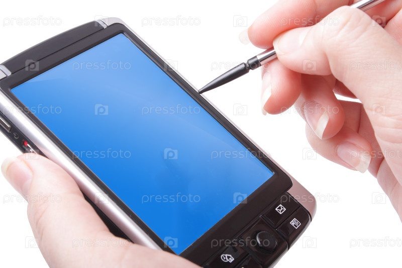 PDA и стилус в руке (близко, изолированно)
