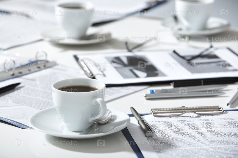 Документы и кофе на столе