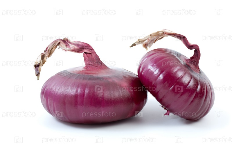 Пара красных луковиц на белом фоне