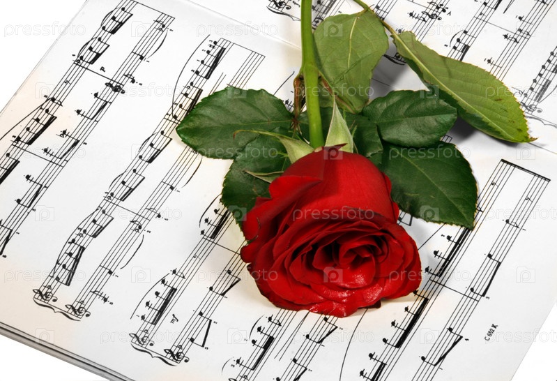 Красная роза на музыкальных нотах