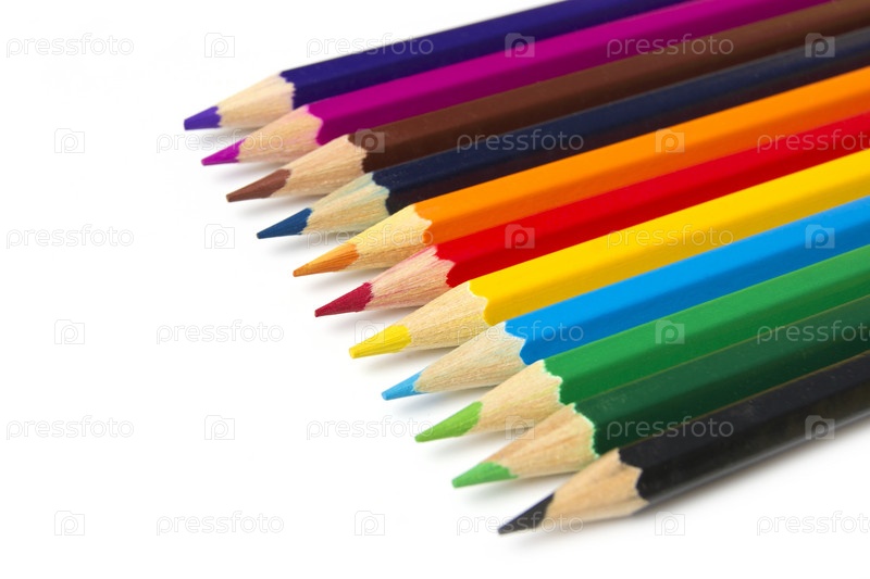 Набор цветных карандашей на белом фоне