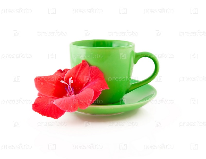 Красивая чашка с цветом на белом фоне