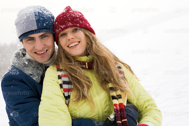 Портрет счастливой молодой пары, вместе смотрящей на камеру