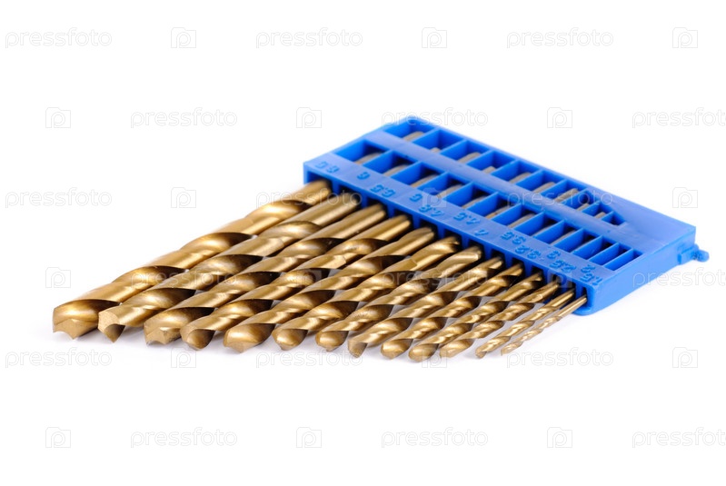 Сверла разного размера на белом фоне