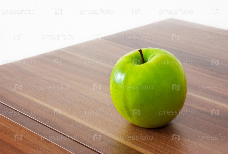 Зеленое яблоко на столе