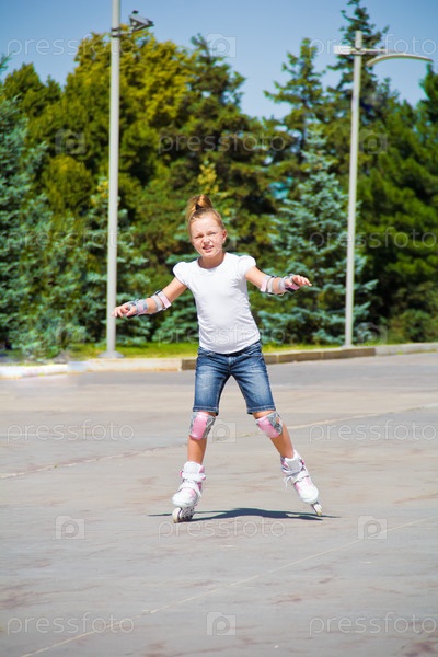 Симпатичная девочка на роликовых коньках