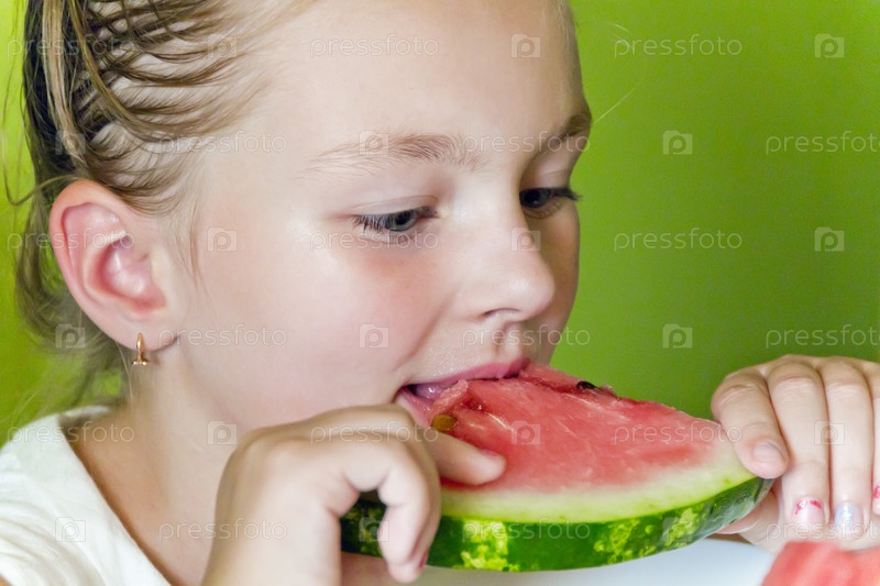 Девочка ест арбуз