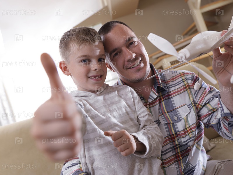 Отец и сын строят модель самолета