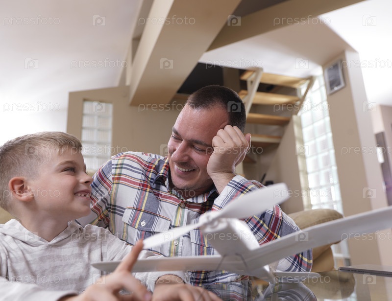 Отец и сын с моделью самолета