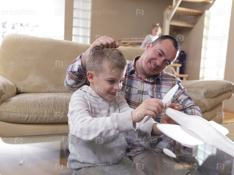 Отец и сын с моделью самолета