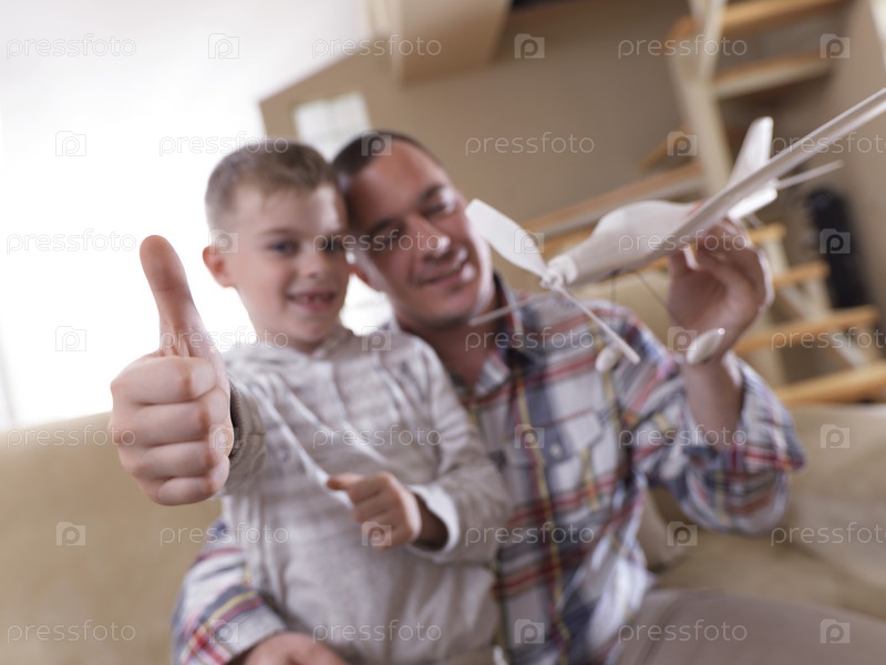 Отец и сын строят модель самолета
