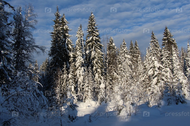 Лес в снегу в солнечную погоду