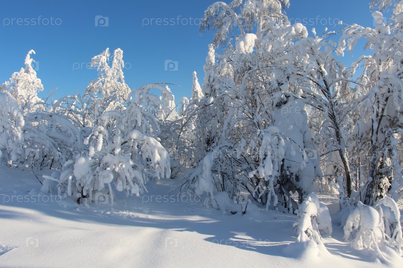 Лес в снегу в солнечную погоду
