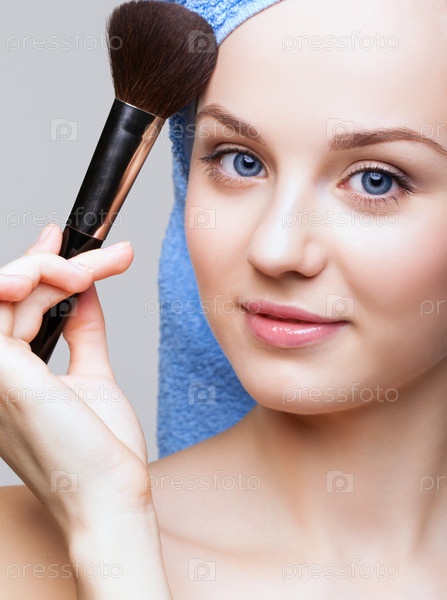 Женщина с косметической щеткой