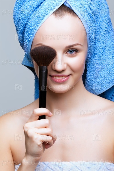 Женщина с косметической щеткой